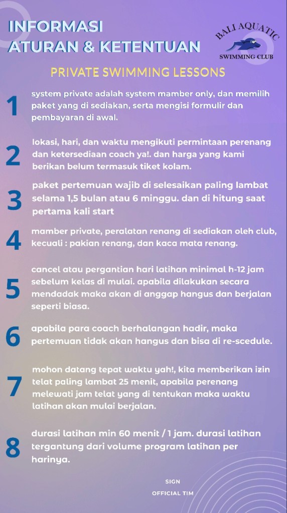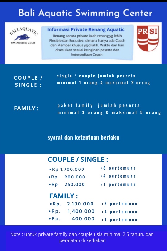 HARGA DAN INFORMARI PRIVATE BALI AQUATIC SWIMMING CENTER